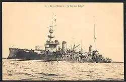 Liberté was a pre-dreadnought battleship built for the French Navy in the mid-1900s. She was the lead ship of the Liberté class, which included three other vessels and was a derivative of the preceding République class, with the primary difference being the inclusion of a heavier secondary battery. Liberté carried a main battery of four 305-millimeter (12 in) guns, like the République, but mounted ten 194 mm (7.6 in) guns for her secondary armament in place of the 164 mm (6.5 in) guns of the earlier vessels. Like many late pre-dreadnought designs, Liberté was completed after the revolutionary British battleship HMS Dreadnought had entered service, rendering her obsolescent.