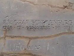Schulenburg served as the German ambassador to Iran from 1922 until 1931, when his visit to the ancient monuments at Persepolis resulted in his name being engraved at the Gate of All Nations. He joined the Nazi Party in 1934. From 1931 to 1934, he served as the German ambassador to Romania before he was posted to Moscow as the last German envoy to the Soviet Union before the invasion of that country by Germany in 1941.