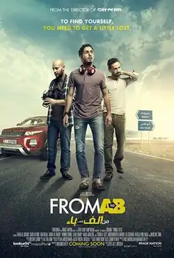 From A to B is a 2014 multilingual Emirati film written, directed, and produced by Ali F. Mostafa.[1] Set in the United Arab Emirates, the film revolves around three old friends (Jay, Rami & Omar) who travel on an adventurous road trip from Abu Dhabi to Beirut in memory of their lost friend Hadi.[2]