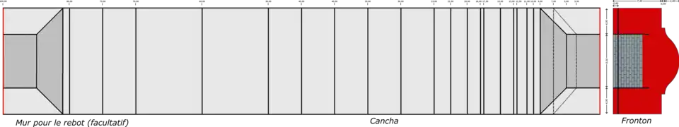 This kind of court is 30 m long and is used professionally only for frontenis and paleta-rubber variants.