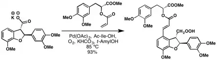 - ^ Wang, Dong-Hui; Yu, Jin-Quan (2011-04-20). "Highly Convergent Total Synthesis of (+)-Lithospermic Acid via a Late-Stage Intermolecular C−H Olefination". Journal of the American Chemical Society. 133 (15): 5767–5769. Bibcode:2011JAChS.133.5767W. doi:10.1021/ja2010225. ISSN 0002-7863. PMC 3085405. PMID 21443224.