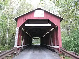 The Furnace Covered Bridge No. 11 is a historic wooden covered bridge located at Cleveland Township in Columbia County, Pennsylvania. It is a 100.9-foot-long (30.8 m), Queen Post Truss bridge with a tarred metal roof, constructed in 1882. It crosses the North Branch of Roaring Creek. It is one of 28 historic covered bridges in Columbia and Montour Counties.[2]
