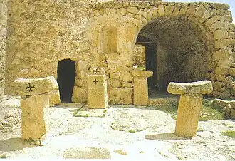 Prior to the start of the First World War, the village had about 200 Syriac families, all of whom belonged to the Syriac Orthodox Church.[10] During the Sayfo, thousands of refugees from throughout Tur Abdin arrived there for safety as the structure of the village allowed for considerable defense from the ensuing violence.[25] Refugees arrived from villages including Habasnos, Midyat, Bote, Saleh, Keferze, Kafro Eloyto, Mzizah and Urnas.[26] The Defence of Iwardo took place alongside the Defense of Azakh in what Ottoman authorities dubbed the "Midyat rebellion",[27][28][29] and was led by a native of the village, Gallo Shabo.[30] The defense lasted 52-60 days[31] and remains significant to the collective memory of the genocide and the village's history, being compared to the Armenian Defense of Van (1915) and Musa Dagh.[32]
