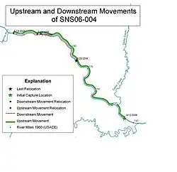 Over a period of time large amounts of data are collected and can be used to track patterns of migration, spawning locations and preferred habitat. Before, this data would be mapped and overlaid manually. Now this data can be entered into a GIS program and be layered, organized and analyzed in a way that was not possible to do in the past. Layering within a GIS program allows for the scientist to look at multiple species at once to find possible watersheds that are shared by these species, or to specifically choose one species for further examination. The US Geological Survey (USGS) in, cooperation with other agencies, were able to use GIS in helping map out habitat areas and movement patterns of pallid sturgeon. At the Columbia Environmental Research Center their effort relies on a customized ArcPad and ArcGIS, both ESRI (Environmental Systems Research Institute) applications, to record sturgeon movements to streamline data collection. A relational database was developed to manage tabular data for each individual sturgeon, including initial capture and reproductive physiology. Movement maps can be created for individual sturgeon. These maps help track the movements of each sturgeon through space and time. This allowed these researchers to prioritize and schedule field personnel efforts to track, map, and recapture sturgeon.