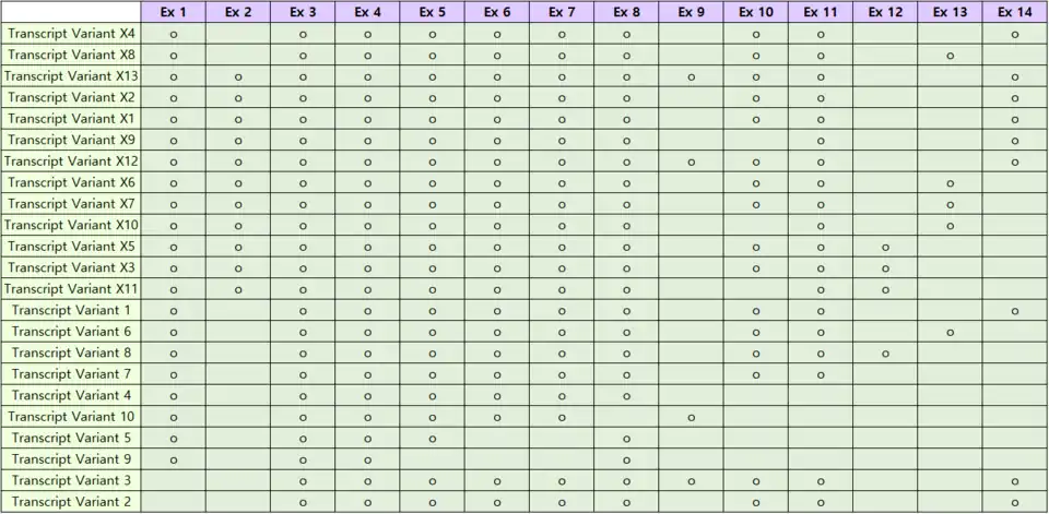 | Transcript Variant X13 | XR_001750418 | 12 | 14,488 |