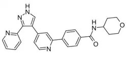 1. ^ Gellibert F, de Gouville AC, Woolven J, Mathews N, Nguyen VL, Bertho-Ruault C, et al. (April 2006). "Discovery of 4-{4-[3-(pyridin-2-yl)-1H-pyrazol-4-yl]pyridin-2-yl}-N-(tetrahydro-2H- pyran-4-yl)benzamide (GW788388): a potent, selective, and orally active transforming growth factor-beta type I receptor inhibitor". Journal of Medicinal Chemistry. 49 (7): 2210–2221. doi:10.1021/jm0509905. PMID 16570917.