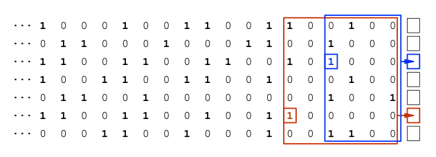 Let denote the matrix whose rows are the histories of all neuron firings from time to time inclusive, that is