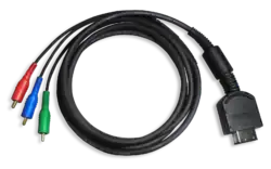The Component Video Cable provides video quality superior to that of the RF modulator, composite video cable and S-Video cable and is equal in quality to RGB Scart (at 576i/50 Hz or 480i/60 Hz). It enables progressive scan (480p/60 Hz) in supported games which is not possible with most other cables. The Japan-only D-Terminal cable also has this feature. PAL released games lack progressive 480p output. The connector plugs into the Digital AV port rather than the Analog AV port used by other cables and contains a Macronix CMPV-DOL video chip (a digital-to-analog converter). This converts the YCBCR digital video coming from the digital port to the YPBPR analog format used by component video equipment. CMPV-DOL's reconfigurability allows it to carry out unusual functions such as YCBCR to RGBHV conversion, but it cannot take advantage of the digital audio from the console's digital port. This means that a separate cable, such as the system's standard A/V cable, must also be connected to the Analog AV port in order to transmit the audio signal.