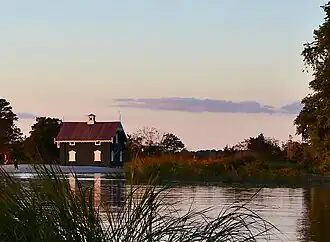 Gamecock Cottage is an historic building located at Stony Brook in Brookhaven Town, in Suffolk County, New York on Long Island. It was built in 1876 for storage of oars and sliding-seat rowboats and is the only remaining wooden beach cottage that was part of West Meadow Beach. It is located at the southernmost point of a peninsula within what is now part of the West Meadow Wetlands Reserve, as the official public beach is now restricted to the north. The Gamecock Cottage sits at the southern endpoint of West Meadow Lane, which was once called Trustees Road.