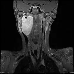MRI of a ganglioneuroblastoma found in the head and neck of a 7 year old Caucasian male.