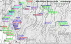 The flight path of Flight 152 with excerpts of the cockpit voice recorder (CVR) transcript
