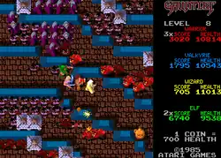 Gauntlet is a 1985 hack and slash video game developed and published by Atari Games for arcades.[3] It is one of the first multiplayer dungeon crawl arcade games.[15][16] The core design of Gauntlet comes from 1983 game Dandy for the Atari 8-bit computers, which resulted in a threat of legal action.[17] It also has similarities to the action-adventure maze video game Time Bandit (1983).