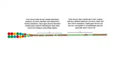 On the other hand, approximately 80% of gene deserts have low GpC contents, indicating that they have very few essential genes.[6] Thus, the majority of gene deserts are variable gene deserts, which may have alternate functions. One prevalent theory regarding the origins of gene deserts postulates that gene deserts are accumulations of essential genes that act as a distance.[1][7] This may hold true, as given the low numbers of essential genes within them, these regions would have been less conserved. As a result, due to the prevalence of cytosine to thymine conversions, the most common SNP, would cause a gradual separation between the few essential genes within variable gene deserts. These essential sequences would have been maintained and conserved, leading to small regions of high density that regulate at a distance.[7] GC content is therefore indication for the presence of coding or regulatory processes in DNA.