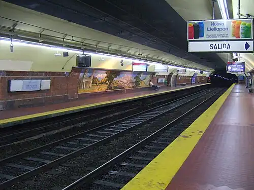 General Urquiza is a station on Line E of the Buenos Aires Underground.[1] The station was opened on 20 June 1944 as the eastern terminus of the inaugural section of the line from San José to General Urquiza. On 16 December 1944 the line was extended to Boedo.[2]