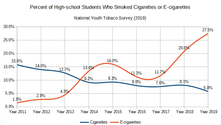 - ^ Perrone, Matthew (November 21, 2019). "Vape debate: Are e-cigarettes wiping out teen smoking?". Associated Press. Retrieved December 2, 2019.