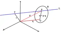 The regressive product is the dual of the exterior product (respectively corresponding to the "meet" and "join" in this context).[i] The dual specification of elements permits, for blades and , the intersection (or meet) where the duality is to be taken relative to a blade containing both and (the smallest such blade being the join).[27]