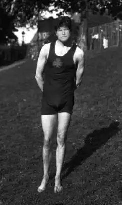 In 1904 he sailed from Liverpool to New York aboard the ship Celtic under the name Geo. S Dockrell.[21][22] Upon his arrival in New York, he joined the New York Athletic Club, and began to train with American Olympic swimmer, C.M. Daniels. He lived in America for two years and competed in the US 440 and 880 yards championships, coming in third place.[23] When he returned to Ireland in 1906, he had success winning all of the major swimming championships in that same year.[23] At the 1908 Summer Olympics, he was the only member of Great Britain's team that advanced to the semifinals of the men's 100 metre freestyle.[23] He placed first in heat 8 with a winning time of 1:13.2, which earned him an advancement to the semifinals, where he placed third in semifinal 2, with a time of 1:11.4. However, he didn't advance to the finals and ended up being 5th place overall.[3]