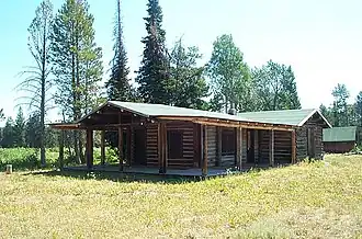 The district includes eleven buildings, about 4.5 miles (7.2 km) north of Moose, Wyoming at the base of the Teton Range near Garnet Canyon. The site offers views of the Cathedral Group.