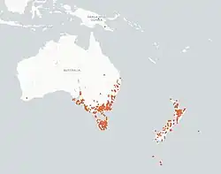 - ^ a b c d e f Whiting, Jenny comp. Roberts, Jill comp. Reeves, Ricky comp. Tayler, Frank comp. Tayler, Verity comp. Jenny Whiting, Jill Roberts, Ricky Reeves, Frank and Verity Tayler, Jenny Whiting, Jill Roberts, Ricky Reeves, Frank and Verity Tayler. Howells, Christine ed. Clark, Alan col. Heather Clark, Heather col. (2012). Tasmania's natural flora. Australian Plants Society Tasmania Inc, Hobart Group. ISBN 978-0-909830-66-3. OCLC 1123906118.
