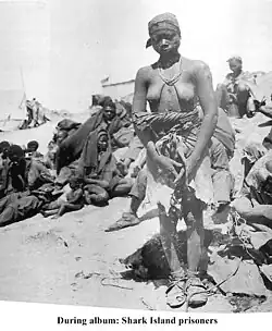 The neighbouring British objected to what they regarded as the inhumane German policy. This involved maintaining a number of concentration camps in the colony during their war against the Herero and Nama peoples. Besides these camps, the indigenous people were interned in other places. These included private businesses and government projects,[12] ships offshore,[13][14][15] Etappenkommando in charge of supplies of prisoners to companies, private persons, etc., as well as any other materials. Concentration camps implies poor sanitation and a population density that would imply disease.[16] Prisoners were used as slave labourers in mines and railways, for use by the military or settlers.[17][18][19]