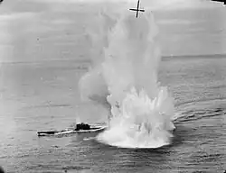 EK591's stick of six depth charges straddled U-625 on their first pass.