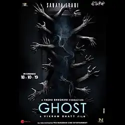 Ghost is a 2019 Indian horror thriller film written and directed by Vikram Bhatt and produced by Vashu Bhagnani Production. The film bankrolled by Loneranger Productions, features Sanaya Irani and Shivam Bhaargava in the lead roles. The story of the film follows Karan Khanna (played by Bhaargava), a politician of Indian origin in the United Kingdom, who is accused of killing his wife. He tells his lawyer that a spirit committed the murder and should be tried. [2][3] Principal photography commenced in November 2018 in London. It was released on 18 October 2019.[4]