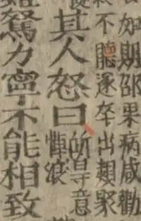 An example of giải âm translation of 其人怒曰 (Kỳ nhân nộ viết; that person angrily said): 所㝵意𢚷浪 (Thửa người ấy giận rằng).