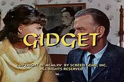Gidget is an American sitcom television series by Screen Gems about a surfing, boy-crazy teenager called "Gidget" and her widowed father Russ Lawrence, a UCLA professor. Sally Field stars as Gidget with Don Porter as father Russell Lawrence. The series was first broadcast on ABC from September 15, 1965, to April 21, 1966. Reruns were aired until September 1, 1966.[1]
