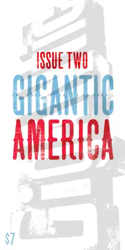 Issue 2 was titled "Gigantic America" and focused on themes of Americana. The magazine was printed in a bound elongated format and included a series of limited edition trading cards designed by Andre Da Loba[1] backed with writing by Deb Olin Unferth, Joe Wenderoth, Clancy Martin, Margo Jefferson, and others. Other writers in the issue included Blake Butler, Robert Coover, Luca Dipierro, Lydia Millet, Sam Lipsyte, Leni Zumas, and comic artist Adrian Tomine.