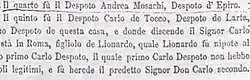 ...Appendixed to the chronicle, though not included here, is a text by John's son, Constantine Musachi, dated 1535, in which the latter states that his father "was buried in the large church of Francavilla in the country of Otranto in a marble grave where mass is conducted three times a week. On it is an inscription reading: Almighty Jesus, this is the grave of John Musachi, the son of Gjin the Despot, Lord of Epirus and of Myzeqe, who stemmed from the city of Byzantium and bore the double headed eagle as his emblem. To him was dedicated this wreath in the year of our lord 1510." For this reason, the following chronicle is traditionally dated 1510. A reference in the text to the Battle of Chaldiran in 1514 proves, however, that John Musachi cannot have died before 1515...