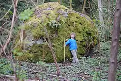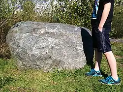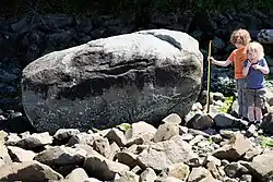 | Ravenna Park erratic in Ravenna Park in Seattle, a granodiorite stone three yards (2.75 meters) tall in Ravenna Creek with a wooden footbridge that wraps around it.[36][37] | c. 10 feet (3.0 m) | |