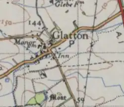 In the 1870s, John Marius Wilson described the village as "GLATTON, a village and a parish in the district of Peterborough and county of Huntingdon. The village stands 3 miles SSW of Stilton, and 3½ WSW of Holme r. station."[7]