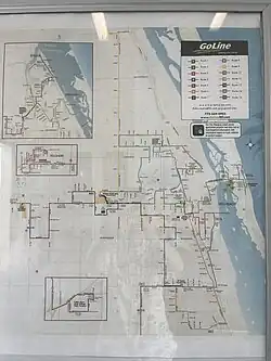 GoLine operates 14 routes in Indian River County, from Indian River County Main Transit hub, South County Transit Hub, and North County Transit Hub. GoLine is open Monday through Friday.[15][16]