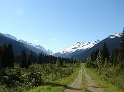 The area was mostly unvisited until the 1980s, when logging activities commenced in the river valley. A road was constructed up the lower river into the Milk River valley. In 1998 the Fraser Headwaters Alliance, an environmental advocacy group based in Dunster began opposition to the expansion of logging in the watershed. The FHA constructed a major hiking trail through the drainage in order to promote the natural beauty of the area.[3] Between 1998 and 2000 a new bridge and road into the upper river valley was constructed by a logging company, McBride Forest Industries, based in nearby McBride.[4] Timber licenses in the upper drainage were approved by the provincial government. In the early 2000s resistance by local groups and the high costs of accessing the upper river forced MFI to abandon its logging plans.[2]