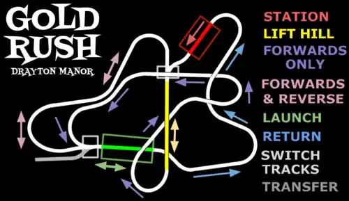 16. ^ Elise (July 26, 2023). "Gold Rush – Drayton Manor Strike Gold With Their New Rollercoaster!". themeparkinsanity.co.uk. Retrieved July 28, 2024.