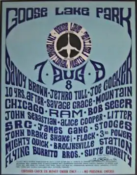 6. ^ a b "Goose Lake festival draws 200,000 fans". Michigan Daily. Ann Arbor, Michigan. August 8, 1970. p. 3. Retrieved May 10, 2012.