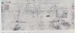 On January 14, 1771, the Premier Grand Lodge deputized Montfort by warrant to be the "Grand Master of and for America." The warrant is in possession of the Grand Lodge of North Carolina and is written in ink and copper on parchment. The seal of the Premier Grand Lodge of England is in the upper left corner.[14][15][16] Although his commission granted him jurisdiction over the English colonies, notes from the Premier Grand Lodge of England at the time noted his commission's jurisdiction was over the Province of North Carolina. Nonetheless, Montfort styled his signature "G.M.A.," meaning "Grand Master, America," and indeed chartered a lodge outside the Province of North Carolina.[17][18][19]