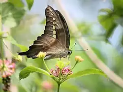 The food-plants are trees with large leaves divided into five lobes [Hernandia, Annona, Uvaria[2]]. The butterfly has a very swift and straight flight; it mostly flies high in the air among the tops of trees, yet it often darts down with lightning speed to feed at flowers or rotten fruit (with which it can be baited); it is especially often seen at the sea-shore, where it is fond of drinking on damp sand.