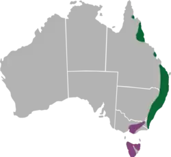 | Range of Macleay's swallowtail G. m. moggana; G. m. macleayanus