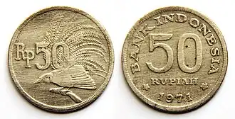 Obverse: Greater bird-of-paradise on a branch and face value. Reverse: Face value surrounded by country and year.