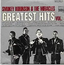 Greatest Hits, Vol. 2 is the second greatest hits album for the Miracles (a.k.a. Smokey Robinson & the Miracles), released in 1968 on Motown Records' Tamla label. It contained the most popular singles from the successful Going to a Go-Go, Away We A Go-Go and Make It Happen albums of the 1965–1967 period. It also featured the 1964 non-album single "Come On Do The Jerk", and two B-sides, "Choosey Beggar" and "Save Me". The hit single "I Second That Emotion" was new to the album. This album reached the Top 10 on the Billboard 200 albums chart, peaking at #7, and peaked at #2 on Billboard's R&B album chart.[1] Ten of the albums' 12 songs were written by Miracles members Smokey Robinson, Pete Moore, Marv Tarplin, Bobby Rogers, and Ronnie White.