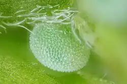 The eggs are laid singly.[1] The caterpillars are not known to be tended by ants, unlike some lycid larvae, but the pupae, which are formed at ground level, emit squeaks that attract ants and it is thought that ants will always bury any that are found. Green hairstreaks overwinter as pupae and are univoltine, having one generation of adult butterflies per year.