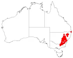 Subspecies ramosissima is endemic to New South Wales where it occurs on the coast, tablelands and slopes south from near Glen Innes and Tenterfield.[15][16]