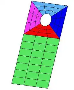 In applied mathematics, a grid or mesh is defined as the set of smaller shapes formed after discretisation of a geometric domain. Meshing has applications in the fields of geography, designing, computational fluid dynamics,[1] and more generally in partial differential equations numerical solving. The geometric domain can be in any dimension. The two-dimensional meshing includes simple polygon, polygon with holes, multiple domain and curved domain. In three dimensions there are three types of inputs. They are simple polyhedron, geometrical polyhedron and multiple polyhedrons. Before defining the mesh type it is necessary to understand elements (their shape and size).