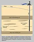 The cause of the long-term surface changes associated with this phenomenon are fairly well known.[2] As shown in the USGS figure, aquifers are frequently associated with compressible layers of silt or clay.
