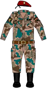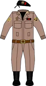 The uniform of the GEO includes: anorak, jacket, sweater, t-shirt, pants, boots and beret. Overalls are used as a complementary clothing piece. During summer, GEO members use a short-sleeved shirt instead of the sweater and the jacket.[15]