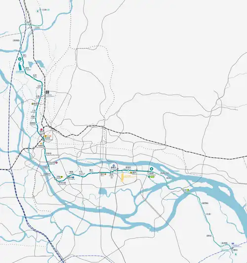 Part of Phase 3 adjustment plan of Guangzhou Metro, now under review by the National Development and Reform Commission as of September 2022.[10] This extension will bring Line further North beyond Jiaoxin Station.[11] The extension will have provisions to be divided into two lines at Jiangfu Station. With the northern section of Line 8 between Jiangfu Station and Guangzhou North Railway Station will be spun off to form the new Line 24.[12][13]