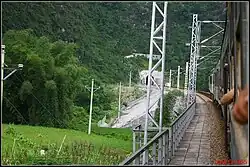 The railway was originally built from 1939 to 1958 and had a total length of 607 km (377 mi). From 2004 to 2009, the line was rebuilt to add tunnels and bridges in place of switchbacks over mountainous terrain and reduced in length to 489 km (304 mi). Travel time between the two terminal cities has been reduced from 14 hours to 5 hours.[1]