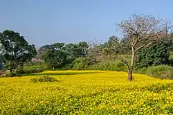 Guizotia abyssinica is an erect, stout, branched annual herb, grown for its edible oil and seed. Its cultivation originated in the Eritrean and Ethiopian highlands, and has spread to other parts of Ethiopia. Common names include noog/nug (Ethio-Semitic and Eritrean ኑግ nūg or ኒህዩግ nihyug); ramtil or ramtilla; niger or nyger seed (all pronounced /ˈnər/ NY-jər);[2][3] inga seed; and blackseed. Noug has been described as semi-domesticated, self-incompatible crop with yellow flowering heads and seeds.[4] Recent studies have revealed the regional genetic diversity of some noug populations grown in Ethiopia based on RAPD and AFLP markers.[5]