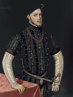 In 1563, at the age of nineteen, he presented himself at the French court. No sooner had he arrived than he was established as a gentilhomme de la chambre du roi (gentleman of the king's chamber) which brought with it an income of 520 livres. He acquired a pension of 600 livres which would then be doubled to 1,200 livres by the queen mother Catherine in 1567.[2]
